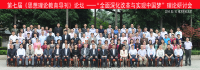 承办的全国第七届《思想理 论教育导刊》论坛——“全面深化改革与实现中国梦”理论研讨会在广州隆重召开。这次会议的主旨是为深入学习贯彻党的十八届三中全会精神和习近平总书记的一 系列重要讲话精神,全面贯彻党的教育方针,推进高校思想政治教育改革创新。会议采取以文入会的形式,会议筹备组面向全国高校从事思想政治理论教育教学的各 位专家和教师征稿,经过专家组认真评审、严格筛选,我部教师魏强博士提交的参会论文《中国梦:中国人民共同的精神动力》入选,魏强老师作为论文作者应邀参 加这次理论研讨会。党的十八大以来,习近平同志提出并深刻阐述实现中华民族伟大复兴的中国梦,强调中国梦归根到底是中国人民的梦,实现中国梦必须走中国道 路,必须弘扬中国精神,必须凝聚中国力量,要通过踏踏实实努力奋斗来推进中华民族伟大复兴中国梦的实现。魏强老师提交的参会论文提出,实现中华民族伟大复 兴的中国梦,是对整个国家核心价值理想的生动诠释,是全体中华儿女对民族共同体未来发展的憧憬盼愿,体现着中国人民共同的利益关切,记录着中华民族艰辛的 奋斗历程,是激励数代中国人奋勇向前的强大精神动力,是支撑和推动中华民族实现伟大复兴的核心精神要件,受到与会专家肯定与好评。