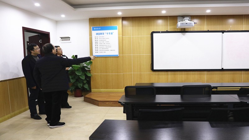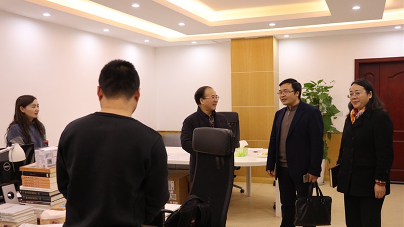 座谈会后,肖铁岩院长、罗滌书记陪同吴边处长参观了学院的办公区、教研室、会议室、图书馆等场所。