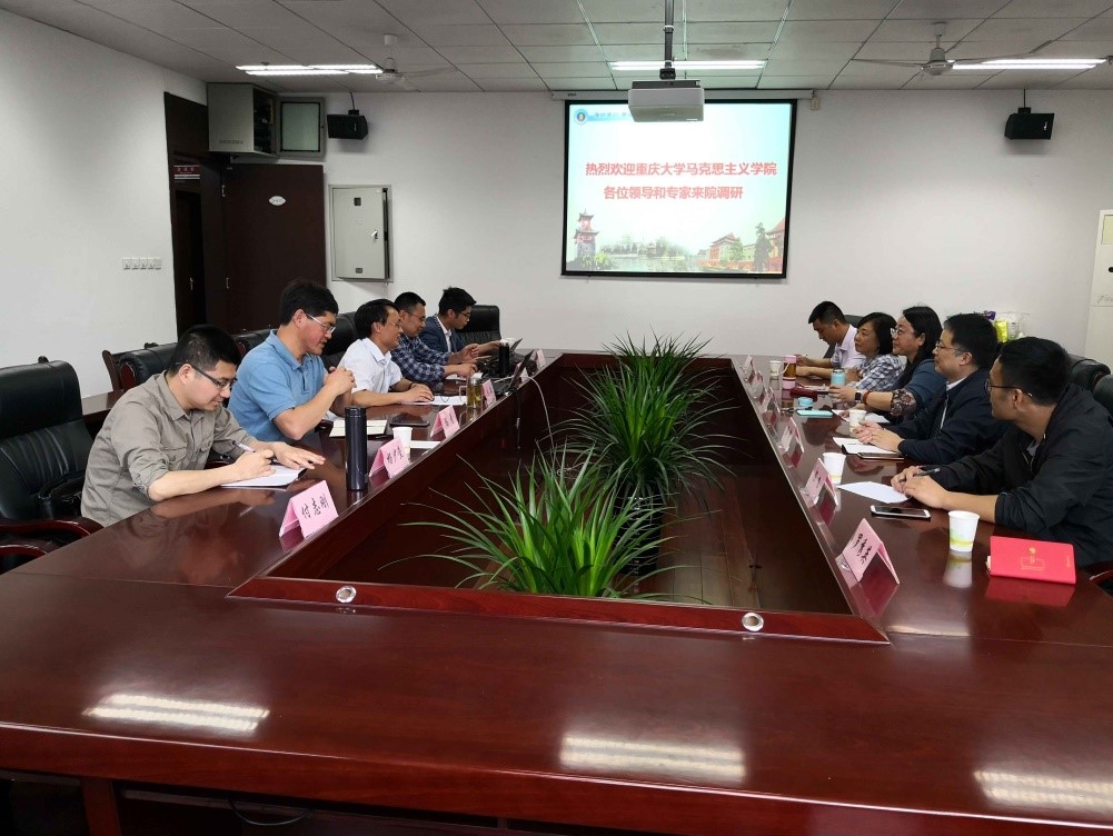 刘占祥书记介绍了学院近年来的发展情况以及队伍建设问题,李学勇副院长介绍了思想政治理论课教学改革创新的最新情况、谢瑜副院长介绍了关于学科建设、学术团队建设、人才培养等方面的情况。双方就学科建设、思想政治理论课教学创新、人才培养、队伍建设以及党的建设等方面进行了深入交流。