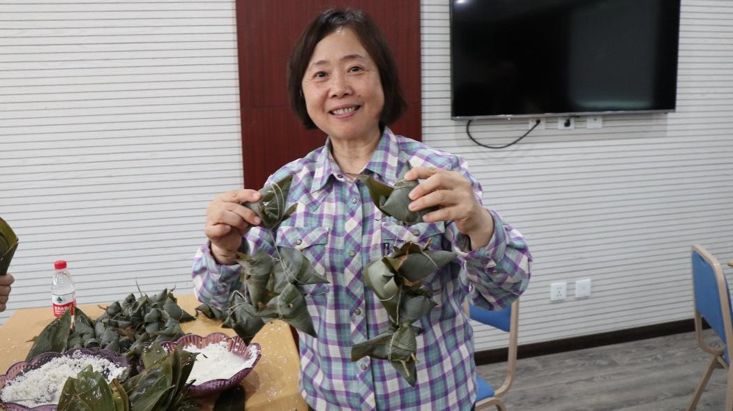 下午三点,教职工们欢聚在学院508教室谈端午的习俗,话集体的温情,欢声笑语不断,你追我赶比赛包粽子。各教研室的老师们竞相亮出自己包粽子的看家本领。通过卷叶、填馅、翻折、捆扎,一个个饱满的粽子在教师们的巧手中孕育而生,有浙江粽、河南粽、重庆粽,各具特色。