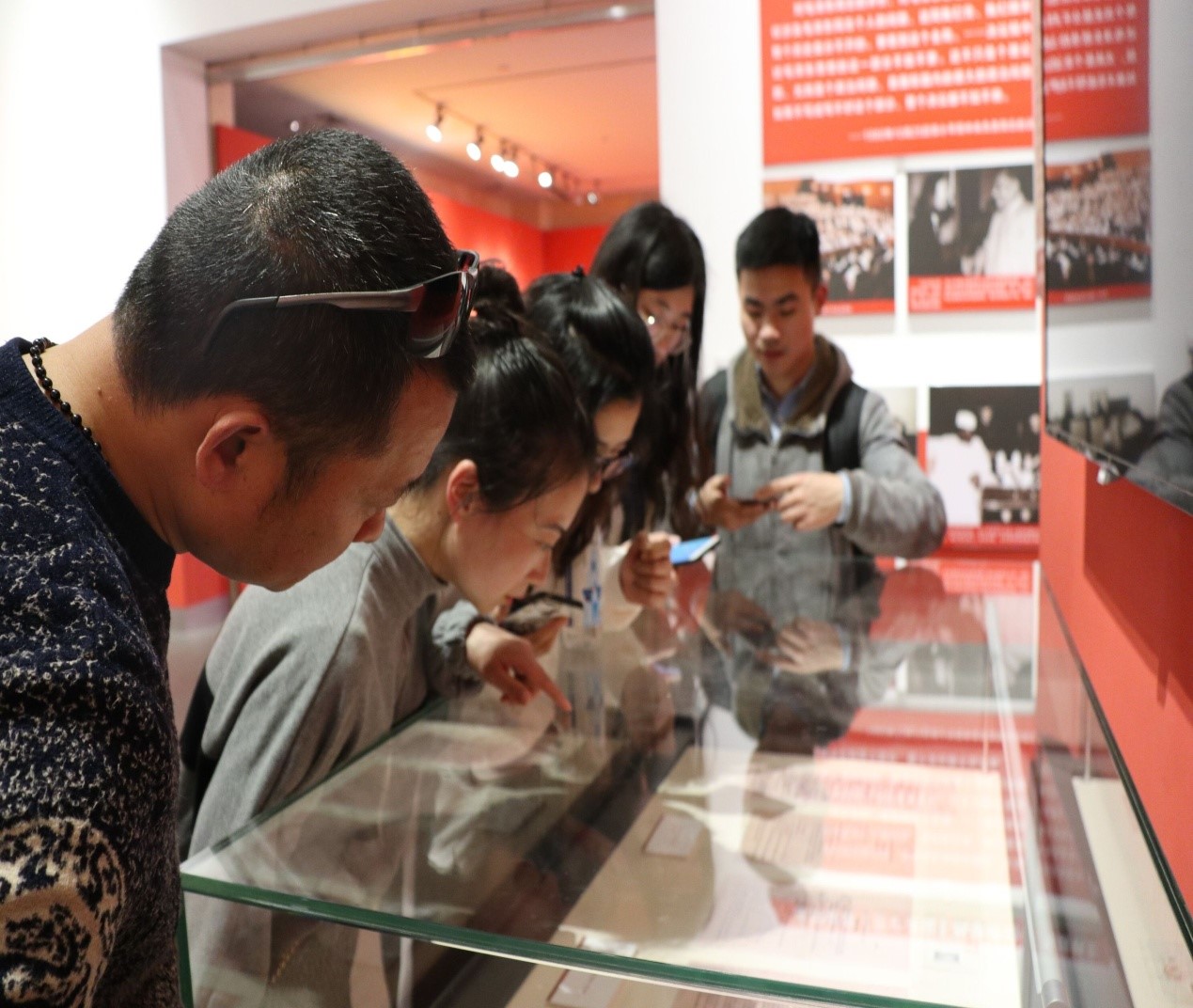 顺着主游道一路往前,我们来到以“我是中国人民的儿子”为主题的邓小平故居陈列馆。馆前红底黄字写着的“庆祝改革开放四十周年(邓小平与改革开放展)春天的故事”,耀眼庄严;陈列馆共收集了有关邓小平同志的408幅图片、170件文物、200多件档案文献资料,通过声、光、电等高科技手段,生动形象地展现了邓小平同志为中国革命、建设和改革事业不懈奋斗的光辉一生。其中,小平同志留法勤工俭学时的工卡、邓小平50年代使用过的印章、毛泽东评价邓小平的手稿、小平1979年访美时美国朋友赠送的牛仔帽、国庆35周年的检阅车、邓小平参加国务活动和视察南方时穿过的服装等许多见证重要历史时刻的文物带领着我们穿越时空与“小平”再次相遇。镌刻在石墙上的“我是中国人民的儿子,我深情地爱着我的祖国和人民。”、“尊重知识,尊重人才”等一字一句不仅深深刻在邓小平的内心深处,也启示着我们要不忘嘱托,勇往直前。