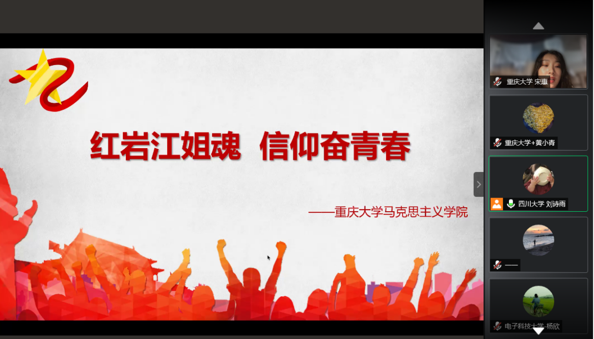 的研究生代表围绕此次活动主题依次进行了精彩发言。我院宋惠同学就“红岩江姐魂,信仰奋青春”为题作了分享。她首先简要回顾了江姐的一生,并谈到江姐用实际行动解答了什么是真正的革命信仰;其次,她以江姐的英勇事迹延伸到重庆红岩精神,并阐述了红岩精神的深刻内涵;最后,她认为新时代青年应当继承和发扬革命精神,争做有理想、有学问、有才干的时代新人,在实现中华民族伟大复兴的新长征路上奋勇搏击。