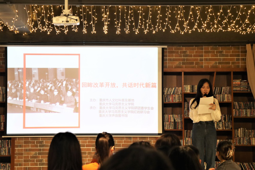 开展了以“回眸改革开放,共话时代新篇”为主题的第二十二期红岩读书会活动。此次读书会通过宣传普及中国改革开放史,旨在让新时代高校学生感受改革开放的光辉历程,自觉从中汲取奋进力量。读书会围绕展现改革开放的文学著作《巨变:改革开放40年中国记忆》《中国超越:一个“文明型国家”的光荣与梦想》与影视作品《历史转折中的邓小平》《鸡毛飞上天》进行研讨。本次活动以线上、线下两种形式结合开展。
