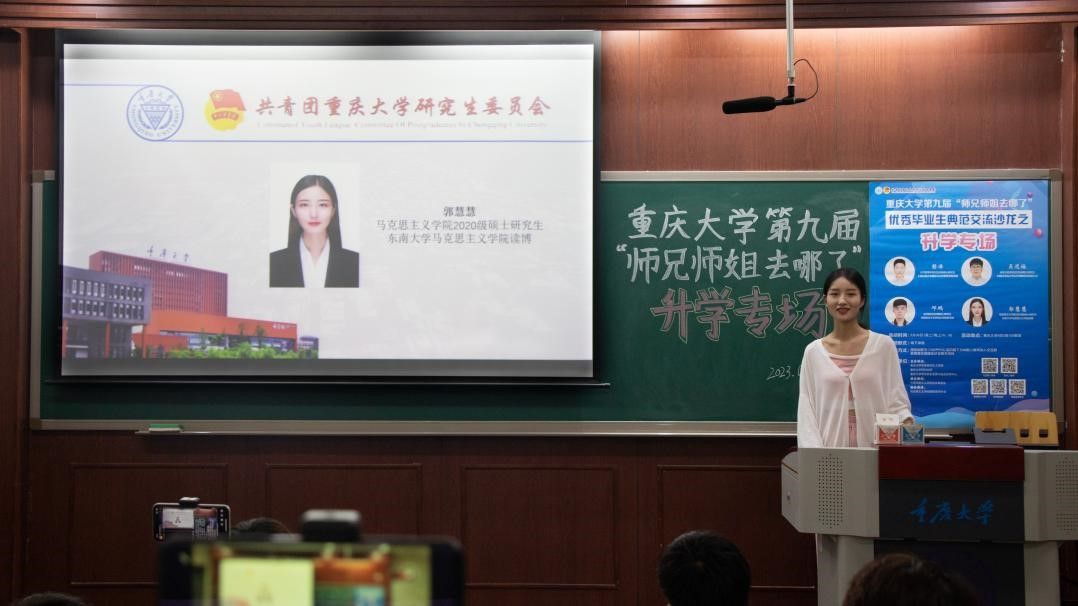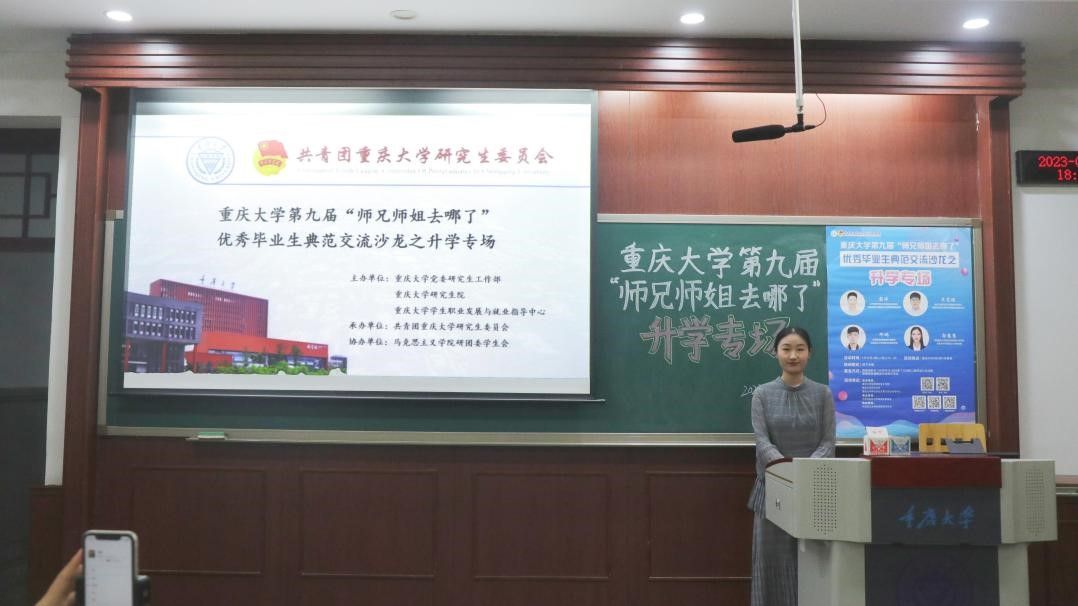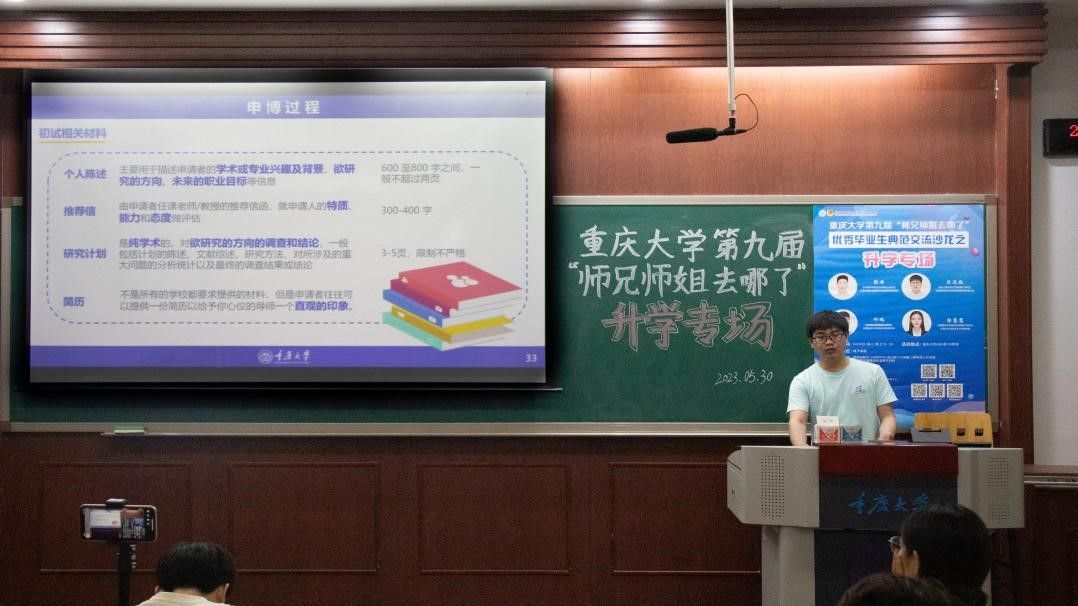 、光电工程学院、法学院、公共管理学院的郭慧慧、吴道福、邓鹏、彭洋4名优秀毕业研究生作经验分享,他们从升学规划、申博准备、申博过程、心理调节等多方面分享了自己在升学过程中面临的困难以及如何解决并取得心仪的offer。