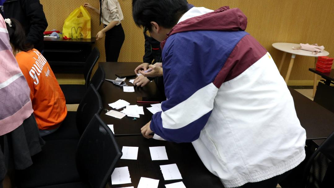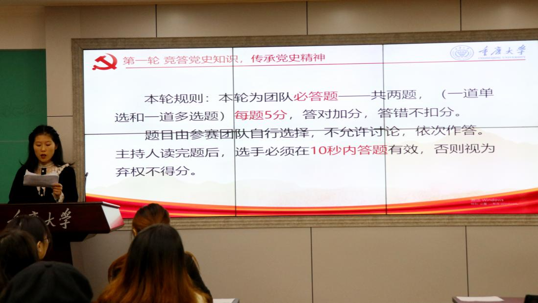 活动之前,将参与活动的同学划分为11个小组,按照小组计分的方式进行知识竞答和趣味游戏。第一环节各小组以现场抽题的形式,围绕中共党史、团史、时政热点问题进行作答,工作人员根据答题情况计分。