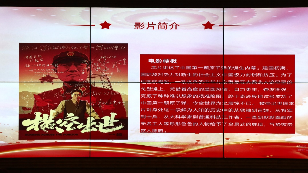 本次活动分为观看电影《横空出世》、分享观影感悟和知识竞赛问答三个环节。《横空出世》讲述了中华人民共和国成立初期,五十年代抗美援朝刚取得胜利,危机四伏的国际环境让党和国家领导人愈发明白要真正实现国家独立和民族崛起,就必须研发出我们自己的威慑力量——核武器。影片是以我国两弹一星元勋邓稼先和上甘岭战役中志愿军三兵团参谋长张蕴珏为原型,描述了一批知识分子和一支人民子弟兵团结一心,前仆后继,克服重重困难,在异常艰难的条件下奇迹般地完成了原子弹研造工程的故事