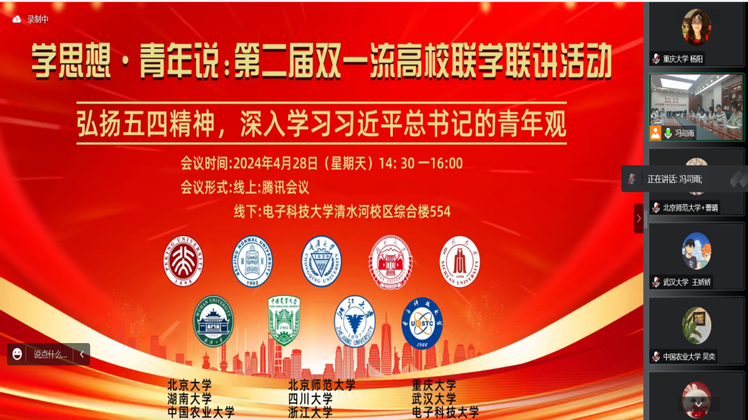 举办的“学思想•青年说:第二届双一流高校联学联讲活动——弘扬五四精神,深入学习习近平总书记的青年观”。此次活动汇聚了北京大学、北京师范大学、浙江大学、四川大学、武汉大学、性爱影片