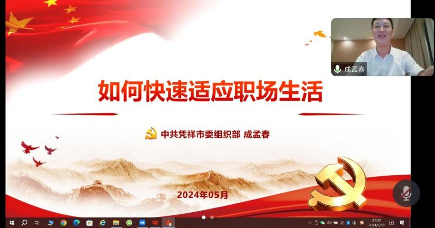 毕业生成孟春作选调生工作经历分享讲座,讲座以线上腾讯会议会场和线下会场相结合的方式开展。
