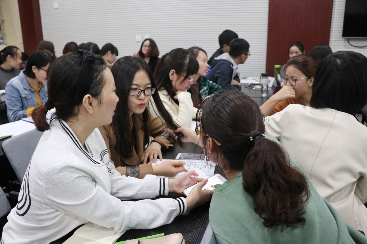 活动伊始,读书会进入分享讨论环节,马尚明同学就“中国道路为什么是对的”代表第一小组作分享,他从中国道路的内涵、坚持中国道路的原因、中国道路的未来展望三个方面进行了阐述 。分享结束后,他提出“中国道路的标准和动力是什么?”这一问题和大家作交流。第二小组代表何丽玲同学则以十九大提出的社会主义新矛盾为题作分享,最后就 “新时代下人们群众需求的特点以及马克思主义理论专业学生可以做哪些努力?”这一问题与大家进行交流。第三组代表韩梦馨同学从“新时代、新内涵、新路径、新思想”四方面为大家作分享,根据分享内容抛出“党的建设为何是关键?”这一话题与大家讨论。接下来是第四组卫婷婷同学为大家分享“四个伟大”,与大家交流其内在逻辑。最后,第五组代表马小帅同学从新思想、新时代两个角度进行分享。每组分享结束后限五人进行抢答交流。同学们积极参与,经过四轮激烈角逐,第二小组同学拔得头筹,小组成员均获得一份礼品。