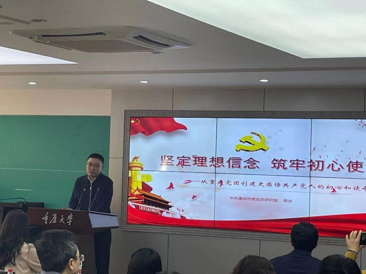 黎余主任以充分的史料详细梳理了重庆党团创建史,并结合重庆党团创建史中的英雄模范人物鼓励在座师生党员牢记共产党人的初心和使命,为中国特色社会主义事业贡献力量。