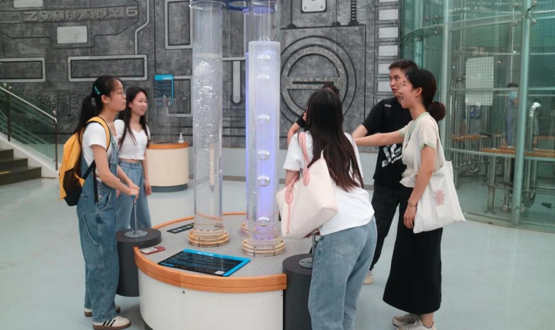 全体党员首先一起参观了生活科技、防灾科技、交通科技、国防科技、宇航科技和基础科学等6个主题展厅,它们系统展示了我国在不同领域所取得的科技成就。置身展厅,大家被各种各样的体验项目所吸引,相继体验了希罗喷泉、形状与流体阻力、神州飞船等项目。