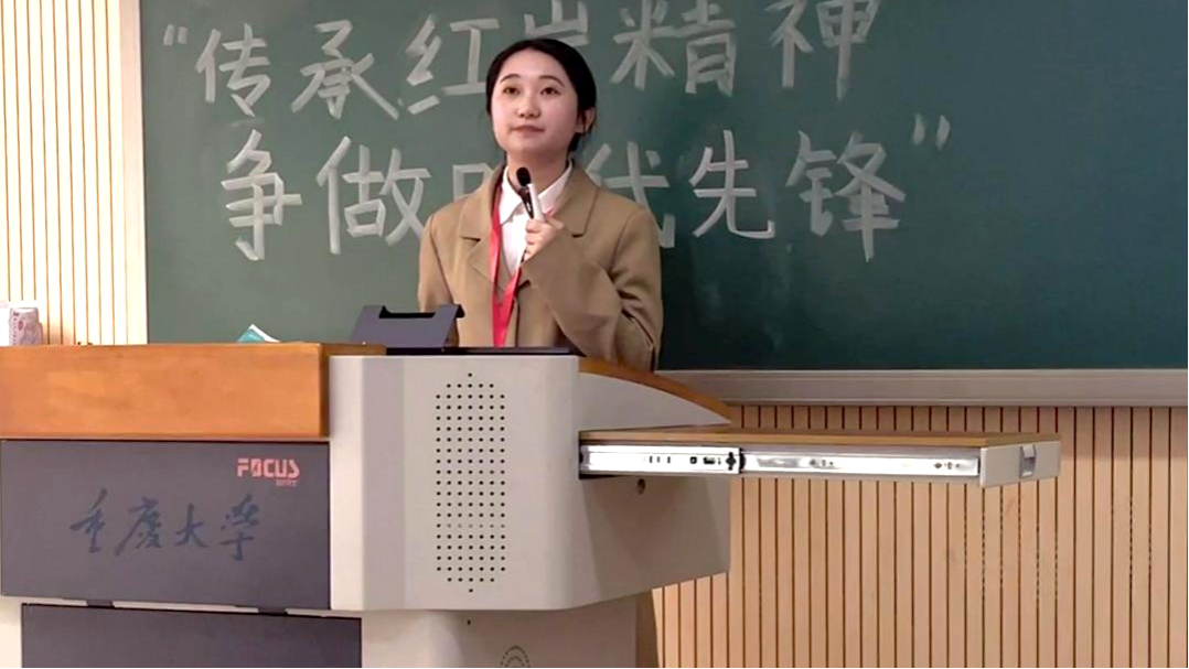 曾孟琴宣讲的主题是“他们于烈火中永生”——学习红岩先烈革命精神。她以习近平总书记2019年4月17日在重庆考察工作结束时的讲话作为开篇,分“毁家纡难为革命——王朴”与“七月里的石榴花——张露萍”两部分向同学们讲诉了革命烈士们的英雄事迹,号召同学们学习红岩先烈为了信仰、为了国家、为了民族,不畏强暴、视死如归、前赴后继的革命精神,在新时代弘扬红岩精神,赓续红色血脉,坚定必胜信念,发扬斗争精神,增强斗争本领。