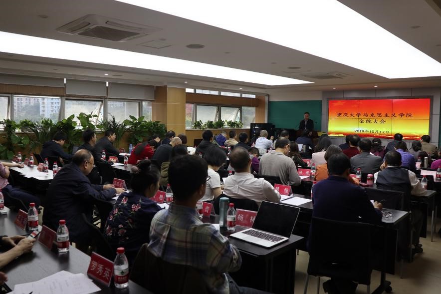 会上,院长张邦辉首先通报了学校、学院为庆祝新中国成立70周年和庆祝建校90周年开展的系列工作的情况。接着,他通报了学院博士点申报工作的进展情况,强调学院将继续加强学科建设、平台建设、队伍建设,用实干实绩助推学院进步,以对标对表助力学校发展。