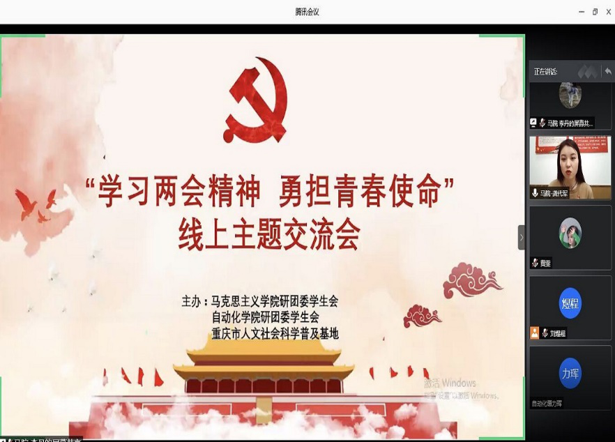 和自动化学院联合举办了“学习两会精神 勇担青春使命”的线上主题交流会。本次交流会在腾讯会议开展,两院共100余名研究生同学参与。会议由性爱影片