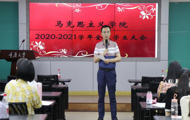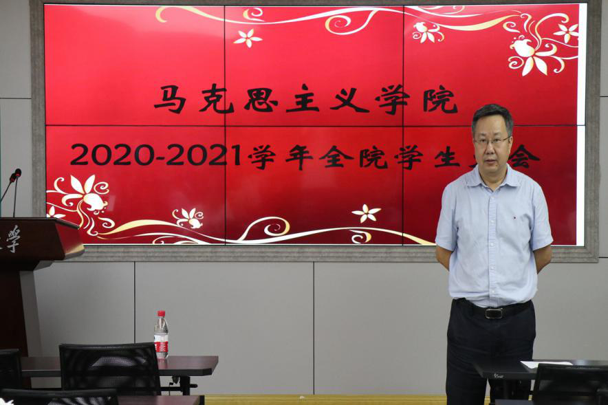 罗滌书记在讲话中着重强调了安全问题。她就学生的学习、生活、就业等问题,结合现实例子,给予了有价值性、参考性的建议。最后她强调了规则意识的重要性,并希望全体同学多向学院建言献策,肩负起重大“马院人”的责任与担当,努力学习,团结合作,奋发向上,为学院发展凝心聚力!
