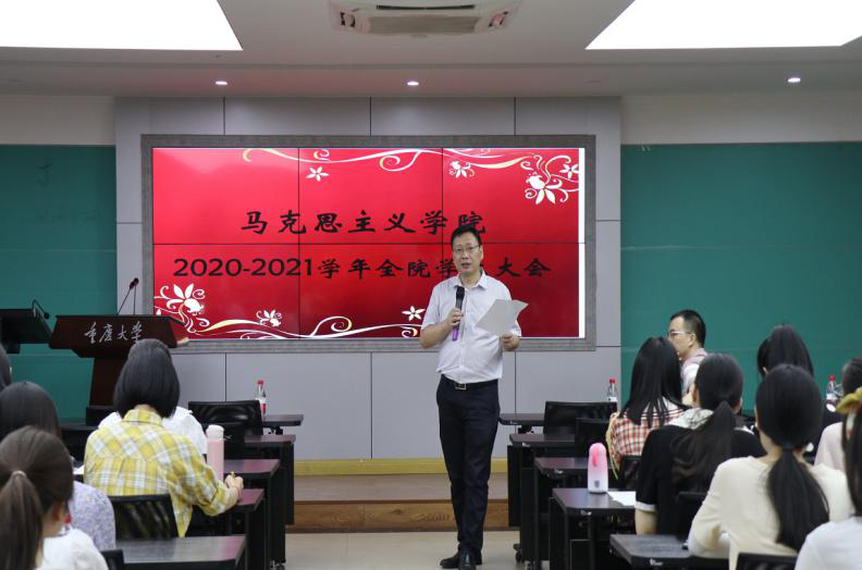 在408会议室召开全院学生大会。学院党委书记罗滌、院长张邦辉、副院长吕进、党委副书记温健琳、辅导员毛娜及全体研二研三学生参加大会。