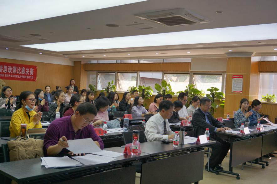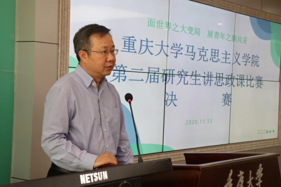 “面世界之大变局,展青年之新风采”第二届研究生讲思政课比赛决赛在学院408教室顺利举行。在初赛中脱颖而出的15位选手,再次登上讲台,展示自我,演绎生动一课。学院党委书记罗滌、院长张邦辉及学院部分师生观摩此次比赛。鄢显俊、蒋荣、杨泽文等来自各教研室的8位教师担任本次大赛评委,另有13位研究生担任观众评审。