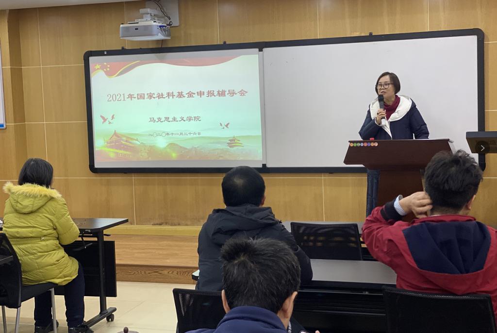 2020年11月26日下午,学院在412会议室召开2021年国家社科基金申报辅导会,学院邀请庞永红教授、肖云教授进行经验分享,学院党委书记罗滌、院长张邦辉、副院长徐鲲、副院长吕进以及学院部分教师参加会议,吕进副院长主持会议。