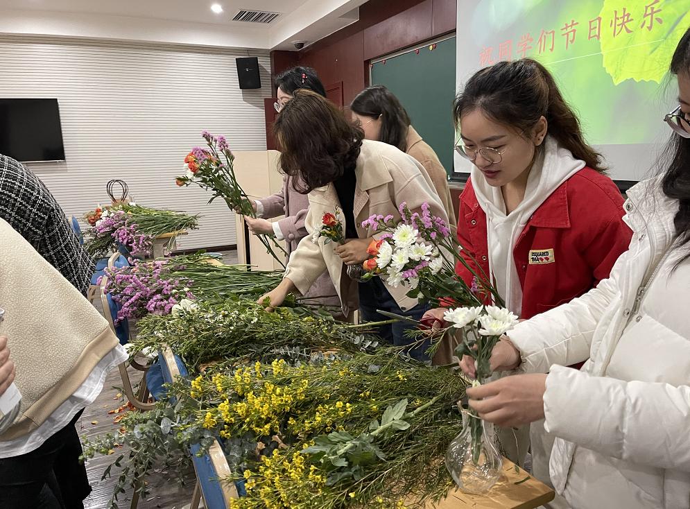 2021年3月8日下午,为庆祝“三八”妇女节,学院组织学生开展艺术插花活动。在浓厚的节日氛围下,同学们兴致勃勃地参与到插花活动中。