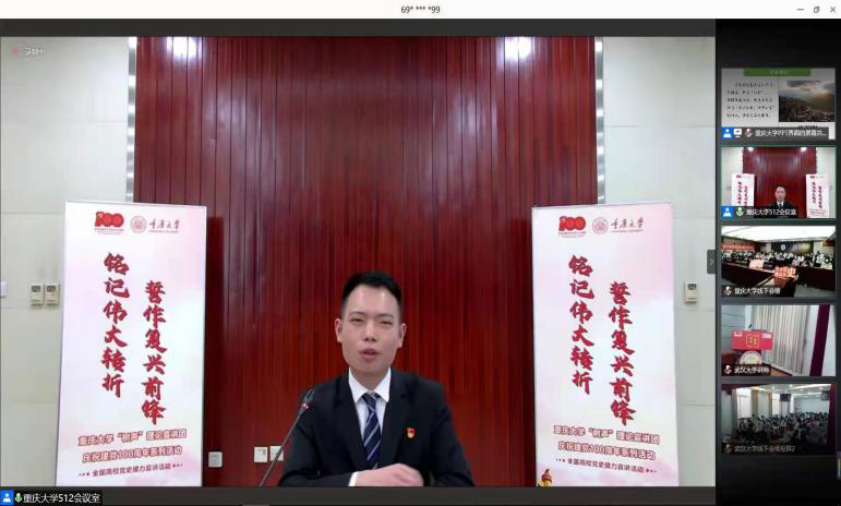 对绿春县的“教育强志促振兴”举措——选派了一批优秀学生成立支教团,前往绿春县开展教育扶贫。在支教前线,重大学子始终践行着“耐劳苦、尚俭朴、勤学业、爱国家”的校训,为绿春县的教育事业作出了力所能及的贡献。汇报最后,他以本次帮扶故事为契机,回望了党史的奋进历程,并号召在场青年共同担起时代之责,学好理论知识、练就专业本领,以青春之力量,助力中华民族伟大复兴。
