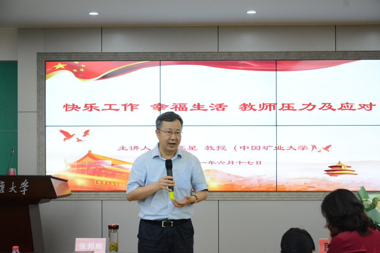段鑫星教授主要从“认识压力”、“理解教师压力”和“教师的解压与成长”等三个方面展开分享。
