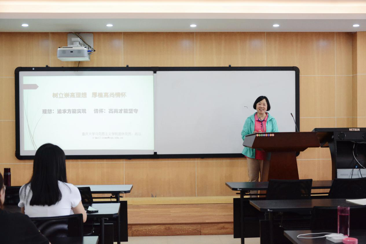 肖云教授在学院412室为学院2021届毕业生党员上了题为“树立崇高理想,厚植高尚情怀”的专题党课。