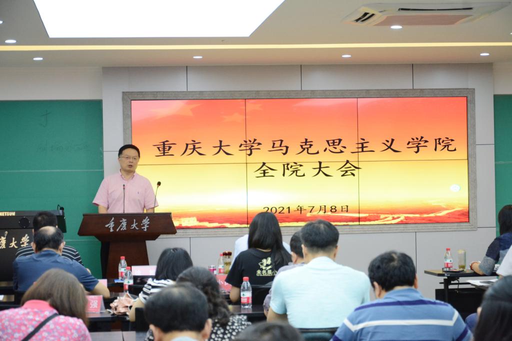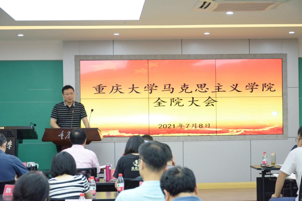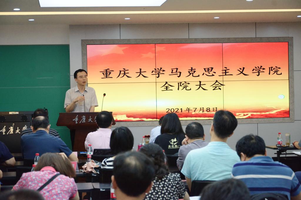 院长张邦辉首先通报了近期学院的发展动态,介绍了在学院近期在博士点申报等方面的工作进展。随后,他要求各位老师做好期末相关工作,鼓励老师们利用假期时间进行论文、项目申报书的写作,积极准备下学期课程的备课工作,他要求各位老师将习近平总书记在庆祝中国共产党成立一百周年大会上的重要讲话精神融入到课堂中去。最后,他提醒各位老师注意假期安全,注意疫情常态化防护。