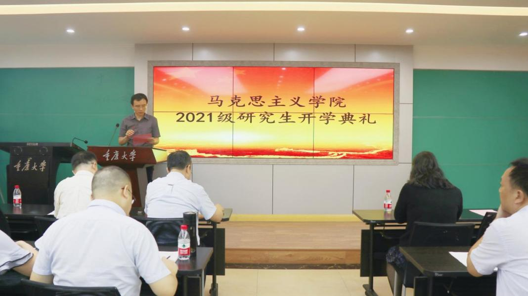 在408会议室举行2021级硕士研究生开学典礼暨导师见面会,学院党委书记罗滌、院长张邦辉、副院长徐鲲、副院长吕进出席会议,部分研究生导师及2021级全体研究生参加了典礼。典礼由学院党委副书记温健琳主持。