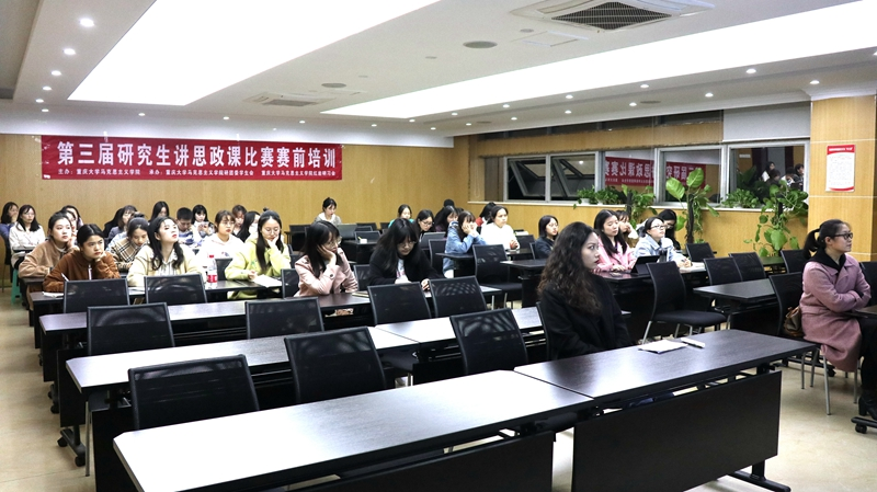 于408教室开展了第三届研究生讲思政课比赛赛前培训活动,邀请了王小凤、蒋荣两位优秀思政教师为全体参赛同学分享授课经验,传授赛课心得。