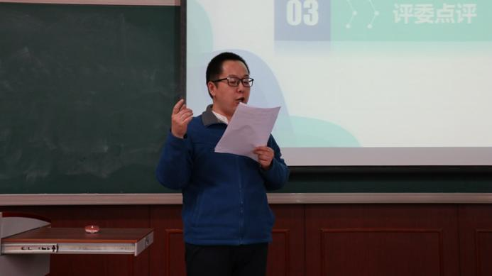 比赛结束后,各评委老师对各参赛选手进行了点评。第一会场的张礼建老师指出,讲思政课要注意授课内容的理论性,内容分析要深刻,同时作为思政课老师要多注重个人的教风修炼。第二会场中,蒋楼老师充分肯定了选手们精心准备比赛的积极态度,并对各位参赛选手的讲课情况逐一提出建议。第三会场中的蒋荣老师建议同学们的授课选题应以小见大,多增加课堂的互动环节,讲课应注重逻辑性与趣味性相结合。
