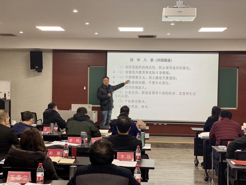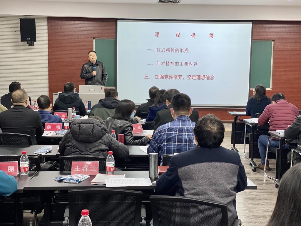 随后,杜老师从“红岩精神的形成”“红岩精神的主要内容”“加强党性修养,坚定理想信念”三部分内容进行了详细讲解。讲课中,杜老师讲到,我们需要积极弘扬红岩精神,不断加强党性修养,坚定理想信念,以忠诚、敏感、敬业、执着去证明我们无愧于新时代高校师生党员的光荣称号。