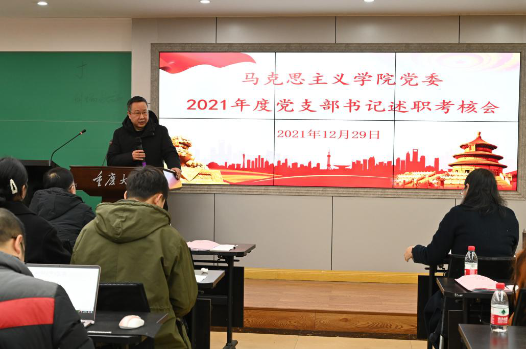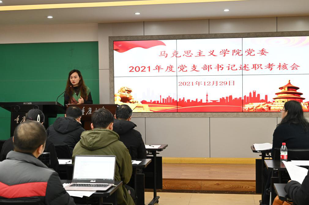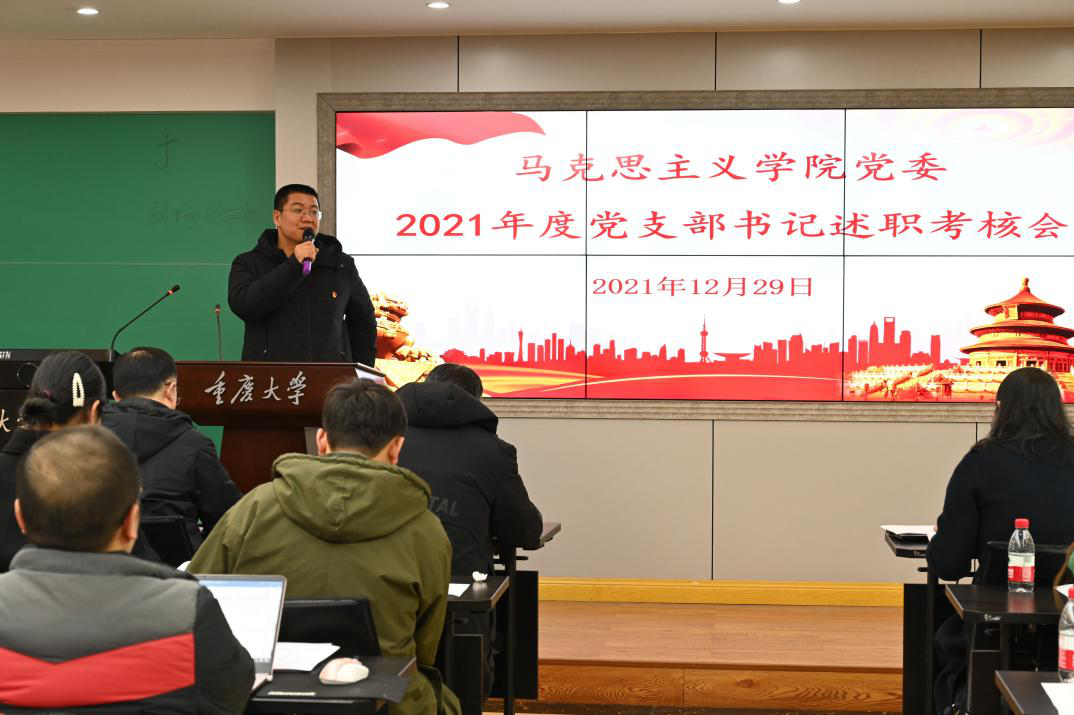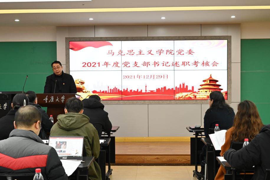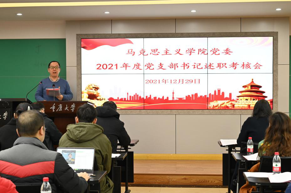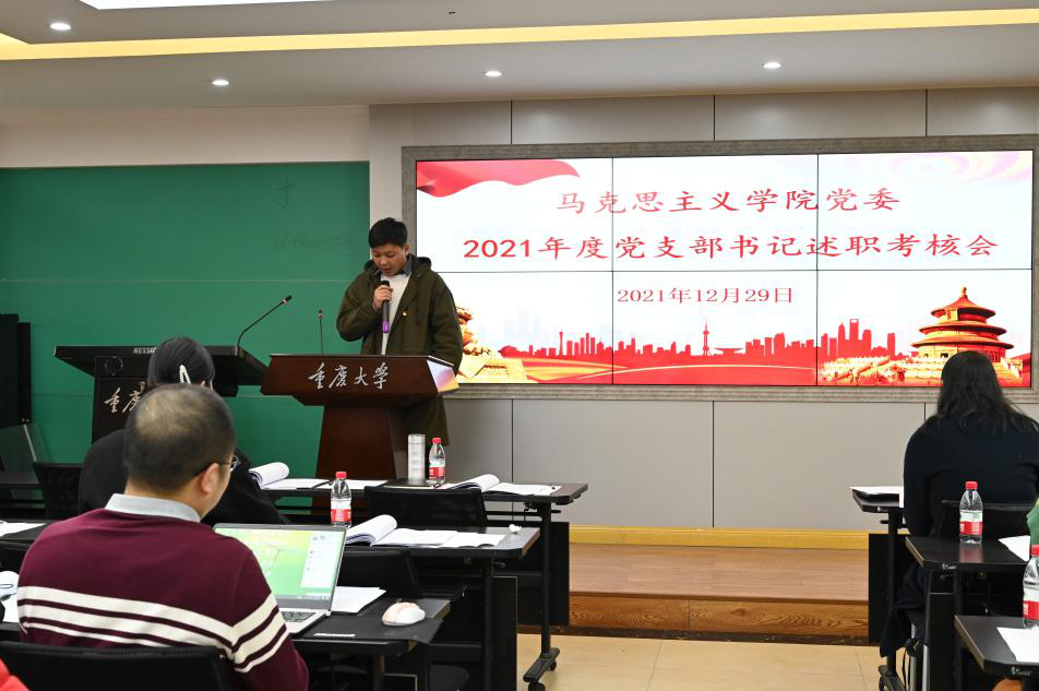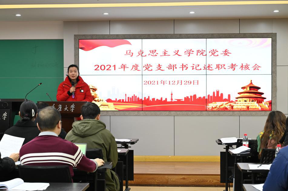 考核会上,党委书记罗滌首先介绍了年度党建工作开展情况及考核会议流程,要求要依据《中国共产党普通高等学校基层组织工作条例》中关于教师党支部及学生党支部的职责要求进行述职。随后学院7个教师党支部和6个研究生党支部的支部书记就本各支部2021年度开展的主要工作、特色做法及成效、存在的问题和下一步工作思路及改进举措等方面进行了全方位汇报。联系支部的学院党委委员先后对支部书记述职进行了逐一点评,对各党支部取得的成绩给予了肯定,针对存在的差距与不足提出了改进建议。