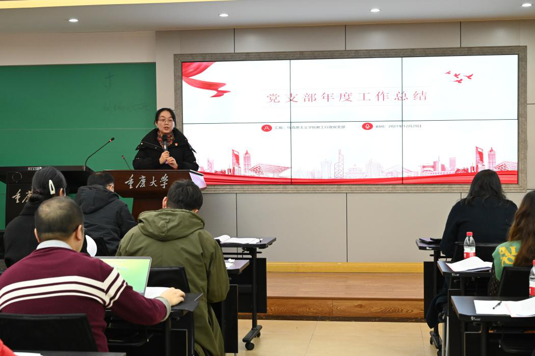 最后,党委书记罗滌对过去一年各支部的辛勤工作表示衷心的感谢,她指出,本次各位党支部书记述职有水平、有思路、有特色、有示范,充分展示了各支部开展的工作取得的成果,圆满实现了考核、展示、学习三个目标。罗书记对下一年度的工作提出了新的要求,她指出,各个支部要思考四个要点,思考党支部“是什么”“为什么”“做什么”“成什么”,在各个支部规范化建设的基础上促进全院各项事业的发展。罗滌要求各党支部书记及支委们要提高政治站位,要带头发挥作用,凝聚支部力量,提高标准,突出马院特色和平台优势,不断提升抓基层党建工作的质量和水平,在未来的一年里促进学院各项工作更上一层楼。