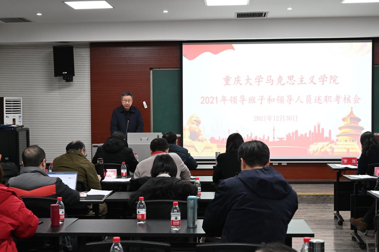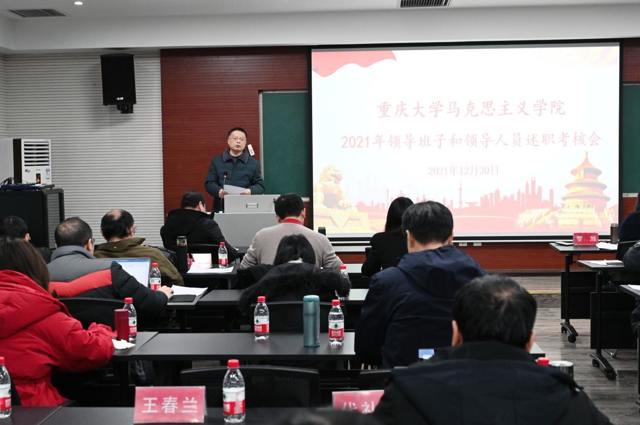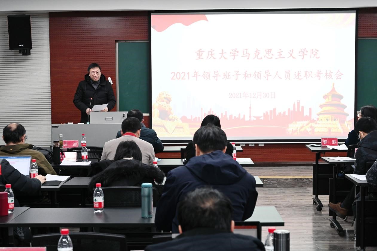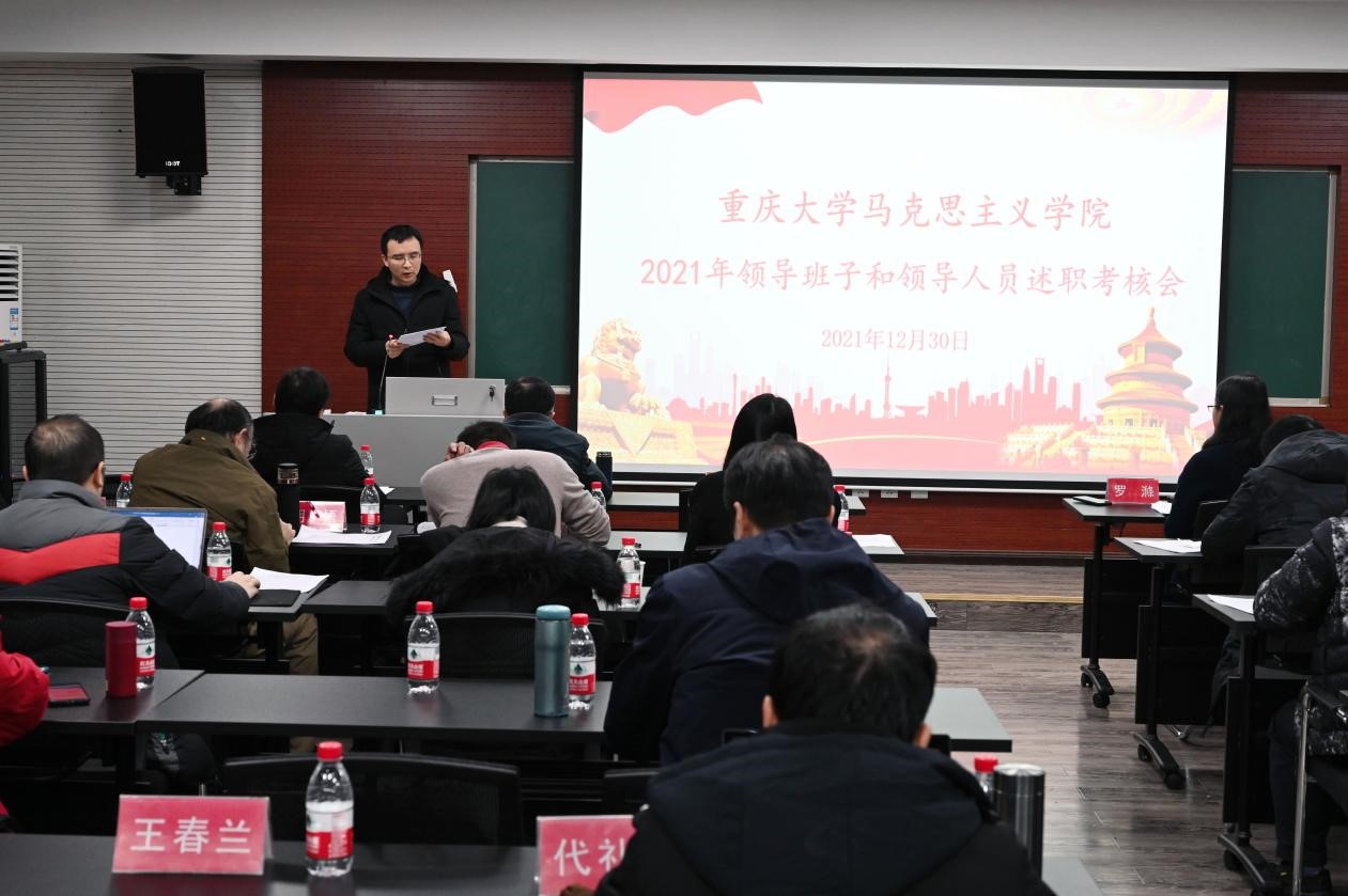 院长张邦辉就个人工作展开述职。张院长表示,一年来,学院学科建设取得重大突破,科研成果稳步推进,学院人事工作取得新进展。学院多措并举引进人才,生源质量稳步提升,公共服务工作有序推进,作为重庆市委宣讲团成员,圆满完成面向党政机关、学校、企事业单位的宣讲任务。张院长还就自己的教学与科研成果等内容进行了述职,并感谢全体教职员工的支持。