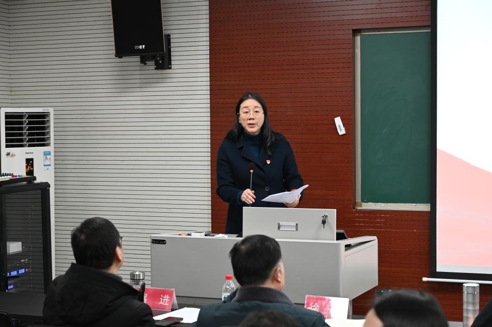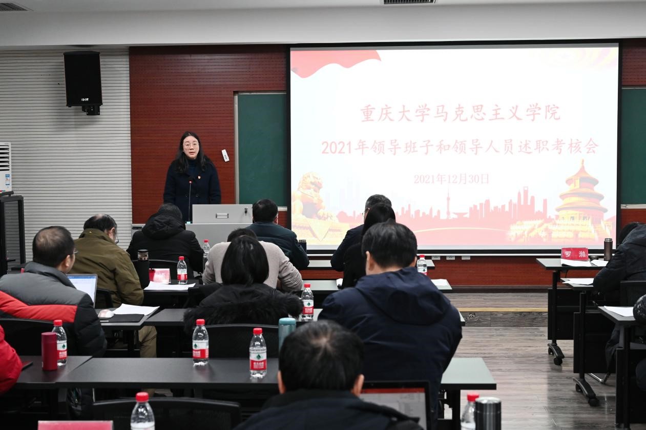 党委书记罗滌首先代表学院领导班子进行述职。罗书记在述职中表示,一年来学院强化党建引领,促进学院发展,积极开展巡视巡察工作,积极进行党史学习教育,学院思想政治工作取得新成效,基层党建工作取得新进展,学科建设取得重大突破,教学质量稳步提升。罗书记表示,学院在2021年里取得的成绩离不开全院师生的辛勤努力,离不开各岗位教职工的辛勤努力,她表示在新的一年里,马院全体师生仍要秉承艰苦奋斗作风,凝神聚力,奋力前行,推动学院更好发展。
