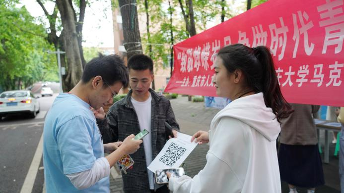 知识竞赛与主题展览同时展开,竞赛内容围绕百年团史、“七一”重要讲话精神、党的十九届六中全会精神等五大主题,既注重史实又结合时政,吸引了美视电影学院、通信学院、机械学院等学院的上百名同学参加,在工作人员的引导和介绍下,通过扫描活动二维码参与答题,并根据答题分数赢得了丰富的奖品。在答题过程中,许多同学不禁感叹“在近代一百年的历程中,我国发生了如此翻天覆地的变化,生于和平年代的我更应该为实现中华民族伟大复兴贡献自己的一份力量。”