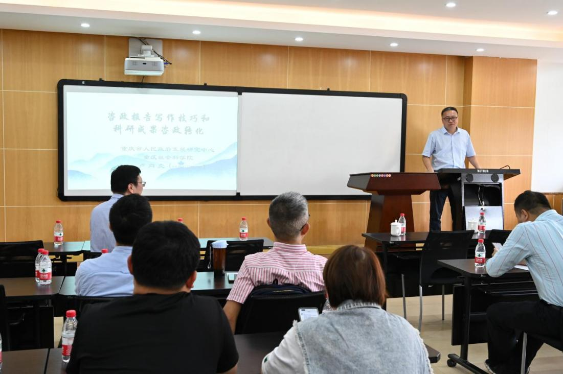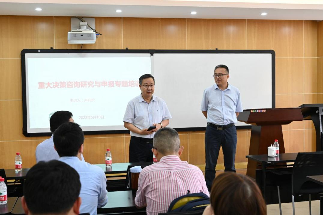 院长张邦辉代表学院向卢向虎处长的到来表示感谢,随后卢向虎从相关政策回顾、《决策建议》刊物情况、如何写好咨政报告和科研成果咨政转化四个方面详细介绍了如何写好一篇合格的咨政报告。