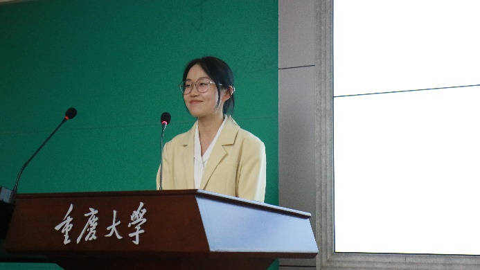 紧接着,李晶晶同学发言。她讲到,学生干部是协助者,也是服务者,重在服务学生。作为学生干部应恪守本职,以高度的责任感和服务精神,做好学生工作,以获得同学们的一致认可为目标。希望在接下来的工作中与老师同学们通力协作,共创佳绩。
