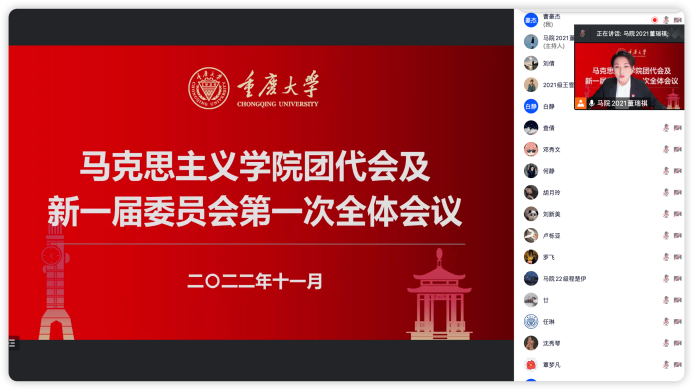 团代会及新一届委员会第一次全体会议在“腾讯会议”顺利召开。马院党委书记罗滌、团委书记刘倩出席此次会议,第六届研团委成员、学院各支部团员代表及第五届委员会成员代表参与。会议由主席团成员董瑞祺主持。