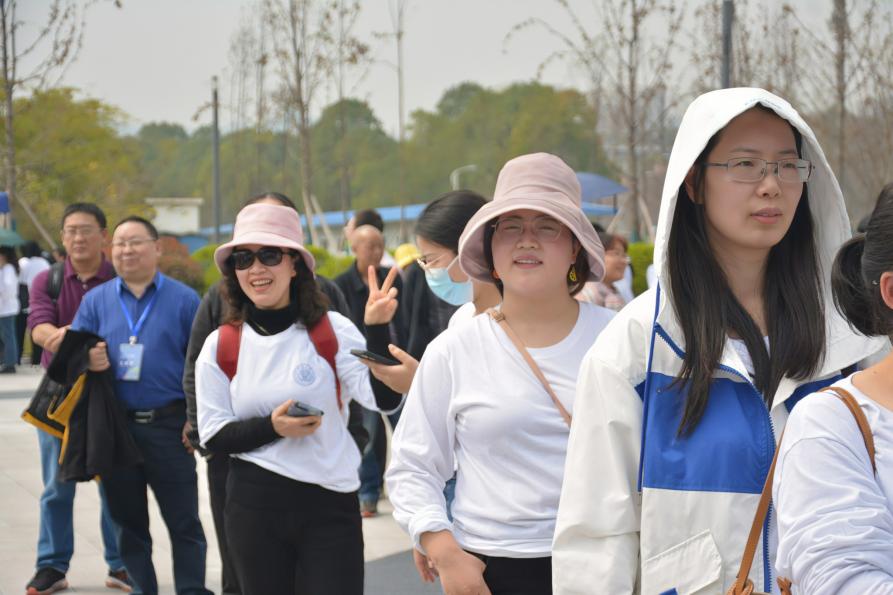 健步行活动开始前大家在体育馆前欣赏了离退休模特队、教职工太极拳和女教职工旗袍走秀等表演。健步行活动正式开始后,奥运冠军李雪芮、世界跆拳道冠军任珂、世界健美操冠军周任洁等人带领大家从体育馆出发,经东大门、图书馆、缙湖、植物园、一教学楼后回到体育馆。健步途中,玉兰花、红梅、郁金香、迎春花热烈盛开、芳香扑鼻,缙湖水面与绿树相映成彰、水波荡漾,大家一路上欢声笑语,其乐融融。