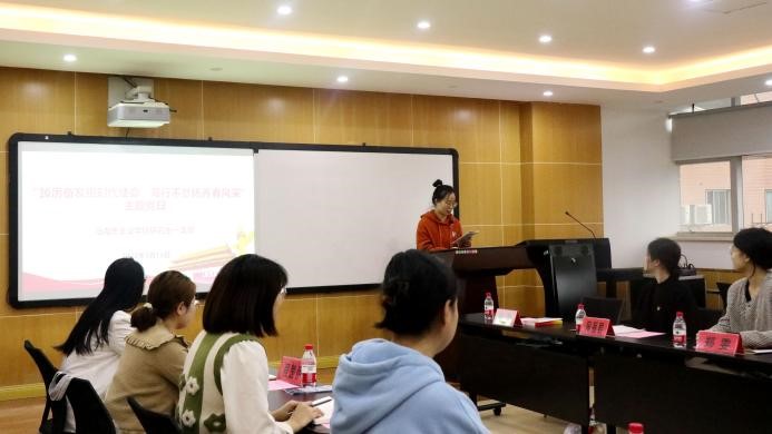 支部成员围绕活动主题作了交流发言。张丹同志表示,马院学子要认真学习贯彻党的二十大精神和习近平总书记关于思政课建设的重要论述,珍惜学习时光,做到带头学、不断学、深入学、持久学,夯实理论基础,立足社会实践,锻造过硬的专业本领。段丽君同志谈到,作为一名马克思主义理论专业的研究生,要以党的二十大精神为指引,坚定不移听党话、跟党走,不断继承和发扬党的优良传统,争做为国效力、为党尽忠、为民造福的新时代新青年。随后,主持人组织开展了生动有趣的知识竞赛,现场气氛热烈。