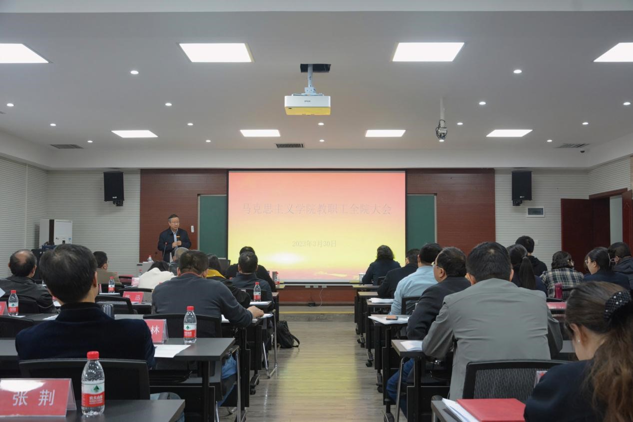 张邦辉院长通报了他参加教育电视台访谈的情况和学院近期在实验室建设、宣传文化等方面的获奖情况,希望学院老师们保持干劲,再创佳绩。他详细讲解了《新时代高校教师职业行为十项准则》,要求全体教师要根据学校的文件要求学习,并将学习效果落实到实际工作去,强调教师要认真备课,遵守教学纪律,确保高质量的思政课教学,同时就学院人才工作、专业建设、学术科研等情况进行了通报。