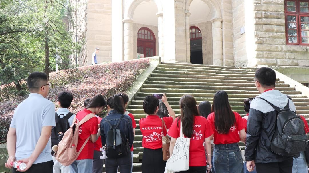 嘉陵与长江相汇而生重庆,人文与科学相济而衍重大。在学院座谈交流后参访师生在校史馆讲解员的带领下参观校史馆和重大校园,走在临江路感受着文字斋、理学楼、工学楼、博雅书院等学校老建筑的历史印记,领略了“复兴民族、誓作前锋”的精神。