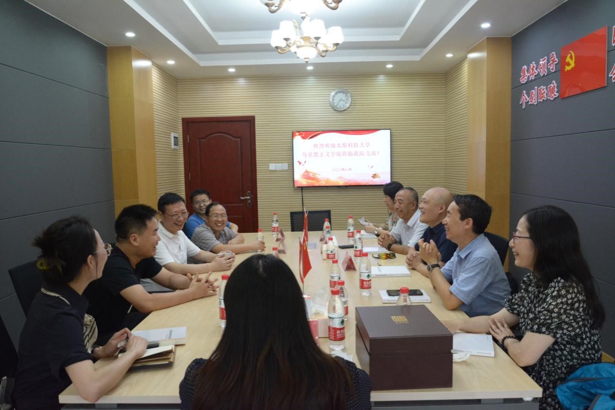 吕进副院长对太原科技大学各位老师的到来表示热烈欢迎,并介绍了我院教学、师资、课程、科研等方面的情况。卫郭敏副院长详细介绍了太原科技大学马院的相关情况。随后双方就“习近平新时代中国特色社会主义思想概论课程开课情况及经验”“思政课教研室建设及课程建设情况”“思政课实践教学开展情况及经验”“思政课一流课程建设情况及经验”“思政课建设的特色经验”等方面进行深入交流。