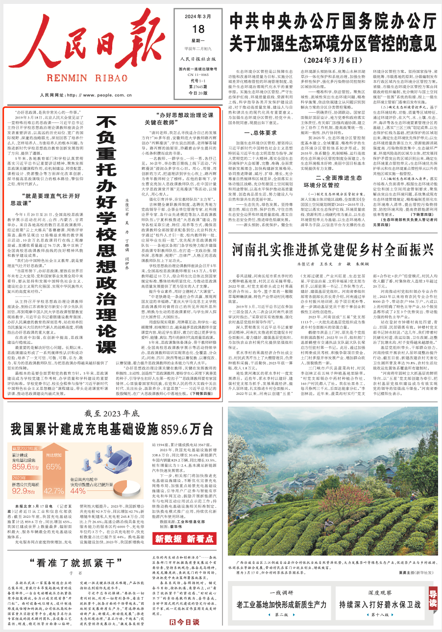 2024年3月18日,《人民日报》头版头条推出《不负重托办好学校思想政治理论课》报道,点赞性爱影片