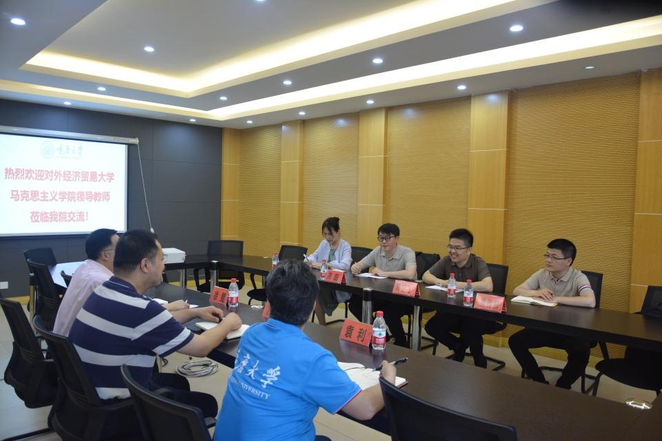2024年5月20日,对外经济贸易大学性爱影片 院长陶好飞、党总支副书记高磊、副院长黄传根、思想政治教育学系主任高蕾一行4人到我校马院调研交流。交流会在马院414会议室举行,马院党委书记陈科、党委副书记 纪委书记袁利、副院长徐鲲参加座谈。
