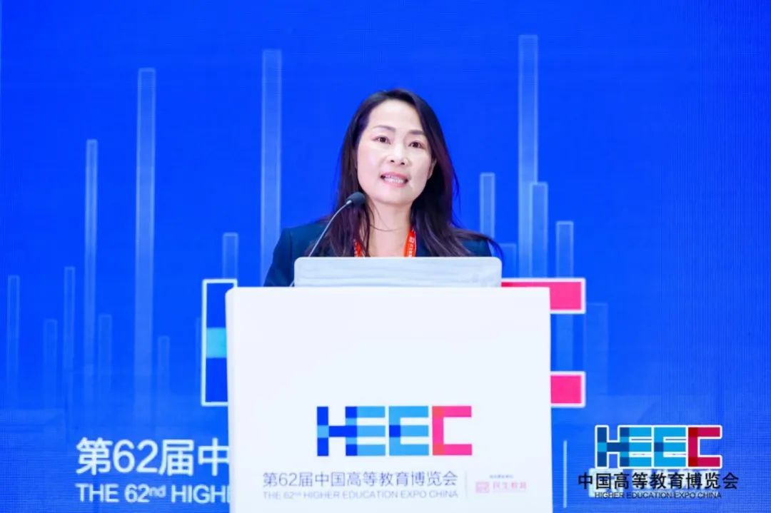 王小梅在致辞中表示,“数字思政”是思政课程的创新发展形式,是进一步提升思政引领力的有效手段,是落实国家教育数字化战略行动的重要举措,也是落实立德树人根本任务的重要载体。中国高等教育学会联合中国教育出版传媒集团共同推进并开展了高校数字思政育人方法研究项目,通过与高校共建共享,凝聚和推广“大思政”数字化建设成果和经验,探索实现了大数据支撑下的精准思政。就高校数字思政的建设和发展,她提出以下三点建议:第一,开拓全局视野,强化数字思政育人空间和阵地建设;第二,把握战略契机,构建数字思政协同体系和融合机制;第三,深化科教融汇,以数字思政推动教育科技人才一体发展。