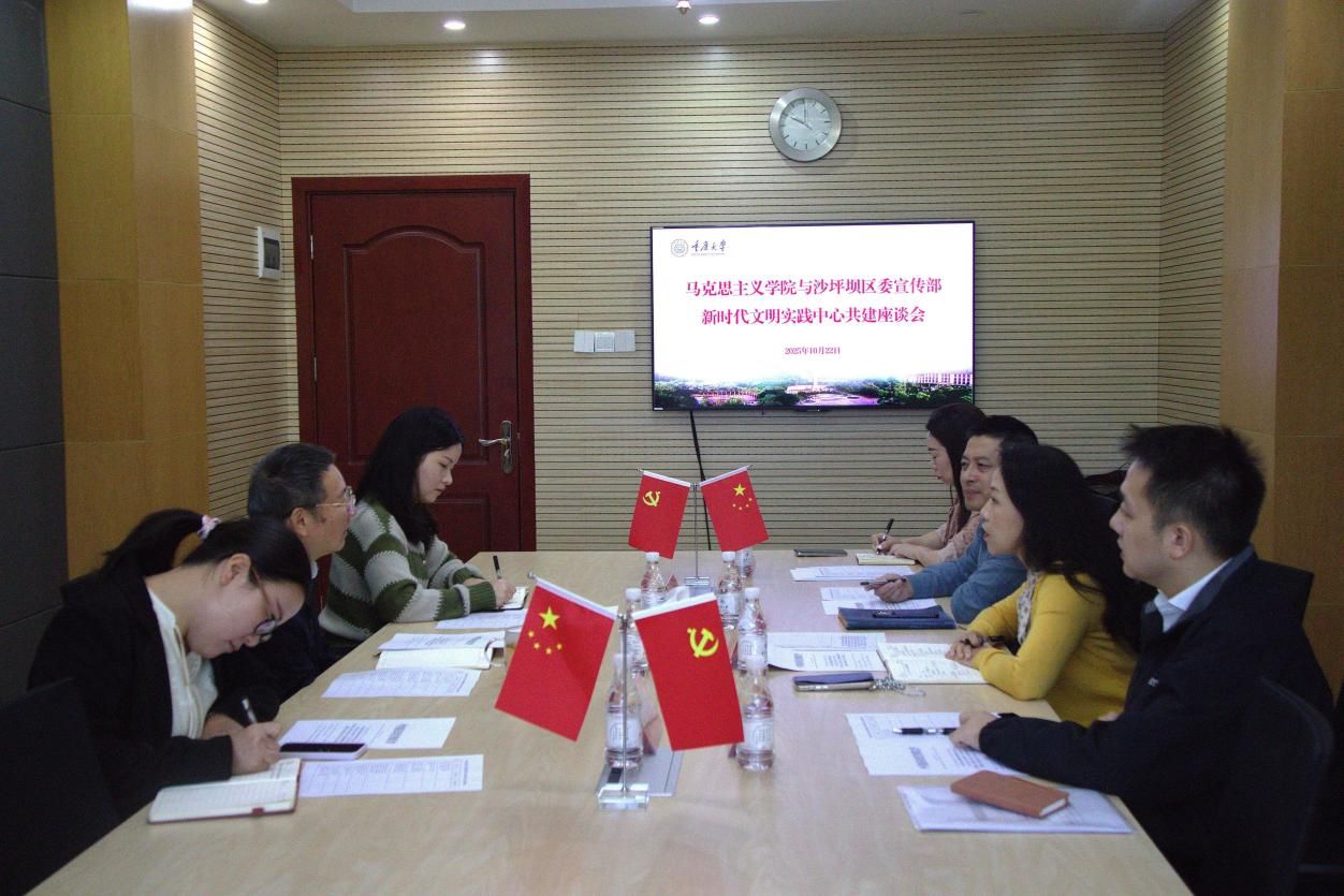 与沙坪坝区委宣传部在学院举行新时代文明实践中心结对共建座谈会,正式建立联系工作机制,携手推动新时代文明实践与高校思政教学科研深度融合。性爱影片
