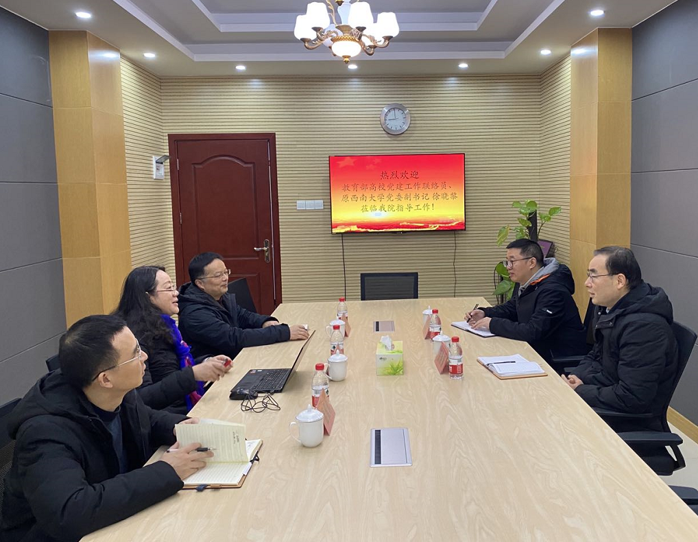 2020年12月2日上午,教育部高校党建工作联络员、原西南大学党委副书记徐晓黎来学院指导工作,校党委副处级组织员魏群义,学院党委书记罗滌,党委副书记温健琳,副院长徐鲲参加座谈。