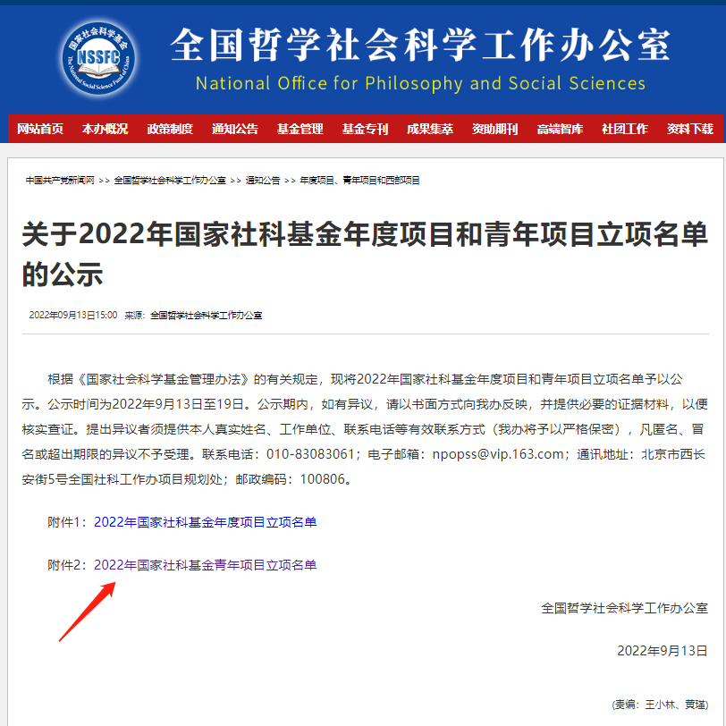 2022年9月13日下午,全国哲学社会科学工作办公室公示了2022年国家社科基金年度项目和青年项目立项名单。我院陈娜、上官小红两位老师获国家社科基金青年项目立项。立项信息如下: